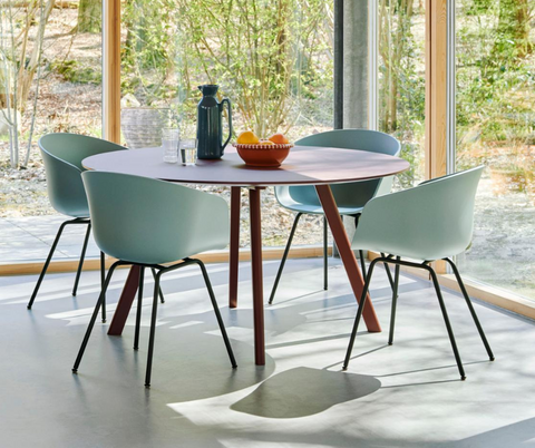 De Copenhague, afgekort tot CPH, is een collectie tafels van de Bouroullec broers voor het Deense merk HAY. Kenmerkend voor het design zijn de schuine slanke poten en het dunne tafelblad. Beschikbaar in verschillende afmetingen van rond tot rechthoekig. Combineer het houten onderstel met een houten blad of kies voor een afwerking in linoleum of laminaat.
